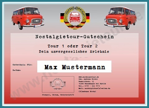 Diese Gutscheine erhalten Sie mit dem Namen des Beschenkten entweder per E-Mail zum seber ausdrucken oder per Post. Der Gutschein erhält erst seine Gültigkeit nach Zahlungseingang und ist 3 Jahre gültig.
